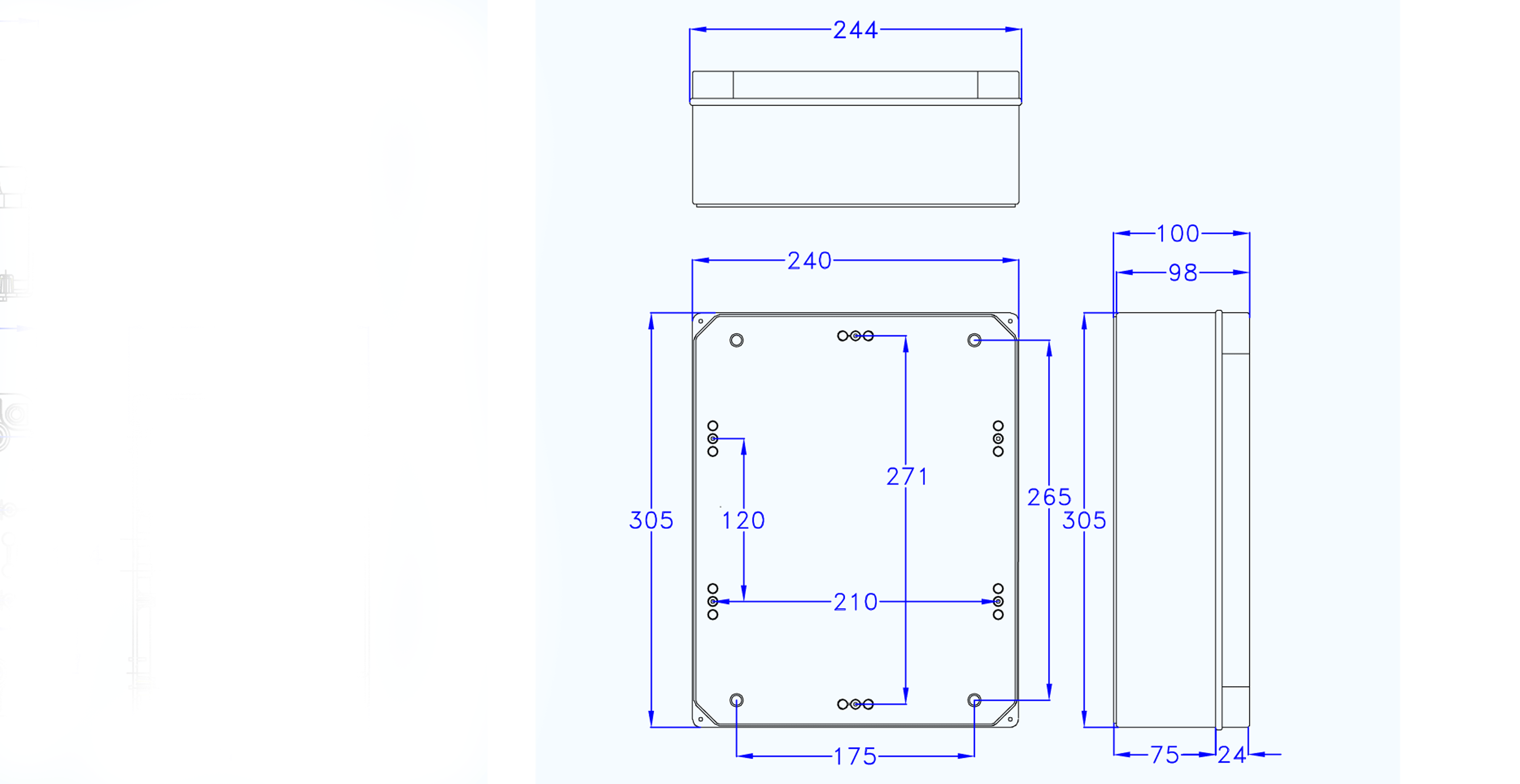 The enclosure is sealed by stainless steel fixings which are included, external wall mounting kits and mounting plates are available to purchase from our accessories.