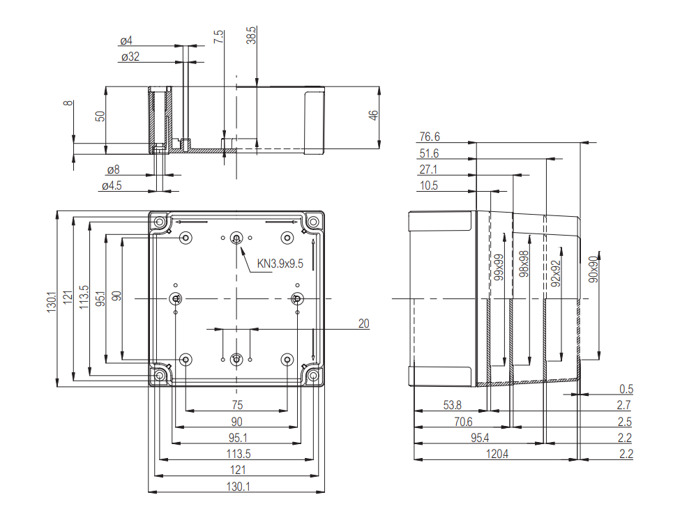 130 × 130 × 125 mm |
