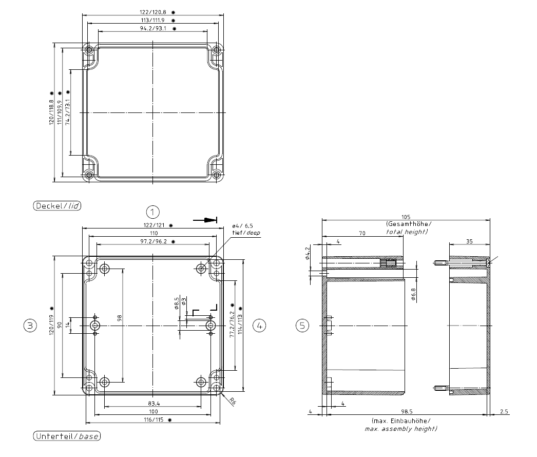Internally there are mounting points designed to accommodate PCB, din rails and mounting plates. Wall mounting accessories are available to buy however there are existing mounting holes in the base of the enclosure that are situated outside of the sealed area and within the lid which allow for a concealed wall mounting option.