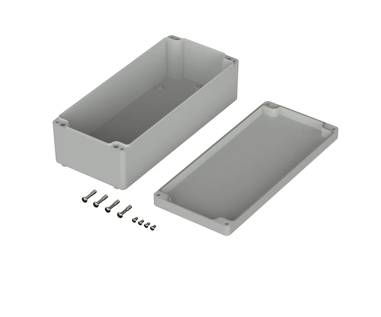 Internally there are mounting points designed to accommodate PCB, din rails and mounting plates. Wall mounting accessories are available to buy however there are existing mounting holes in the base of the enclosure that are situated outside of the sealed area and within the lid which allow for a concealed wall mounting option.