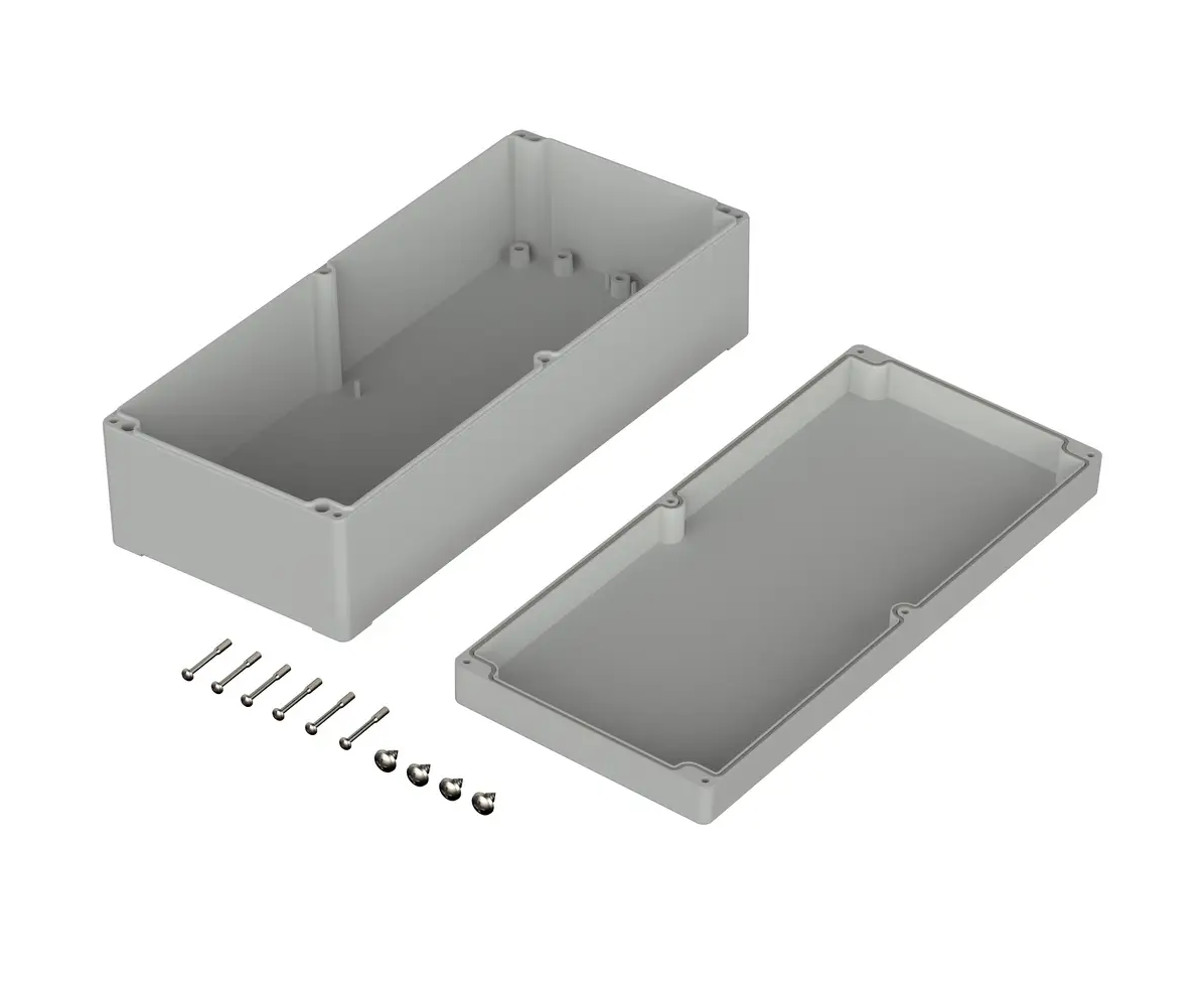 The Euromas are moulded in grey ABS UL94-HB material they are capable of withstanding temperatures of -25°C to 70°C, the rugged design allows the enclosure to absorb impact and protect your electronics.