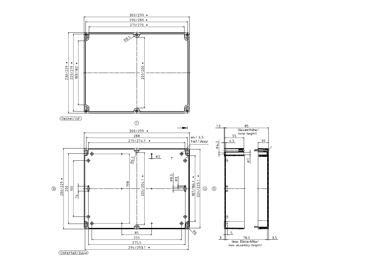 Internally there are mounting points designed to accommodate PCB, din rails and mounting plates. Wall mounting accessories are available to buy however there are existing mounting holes in the base of the enclosure that are situated outside of the sealed area and within the lid which allow for a concealed wall mounting option.