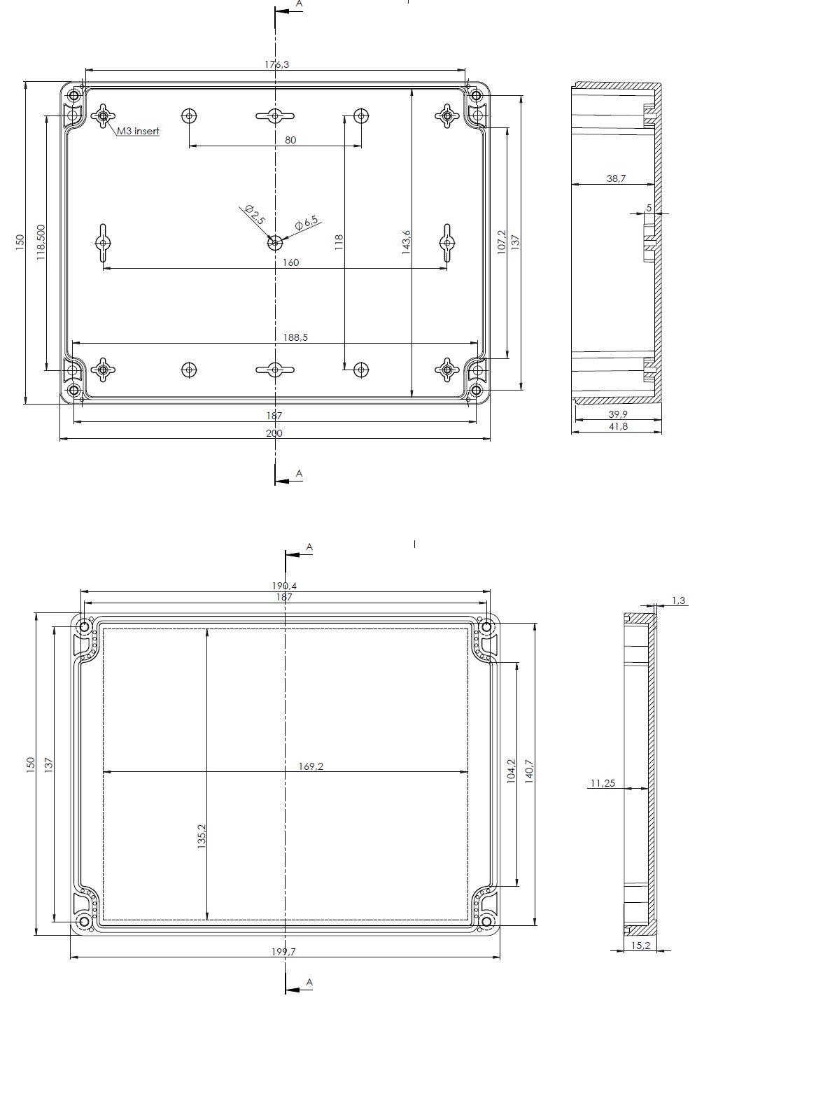 dimensions Dimensions 200 × 150 × 55 mm