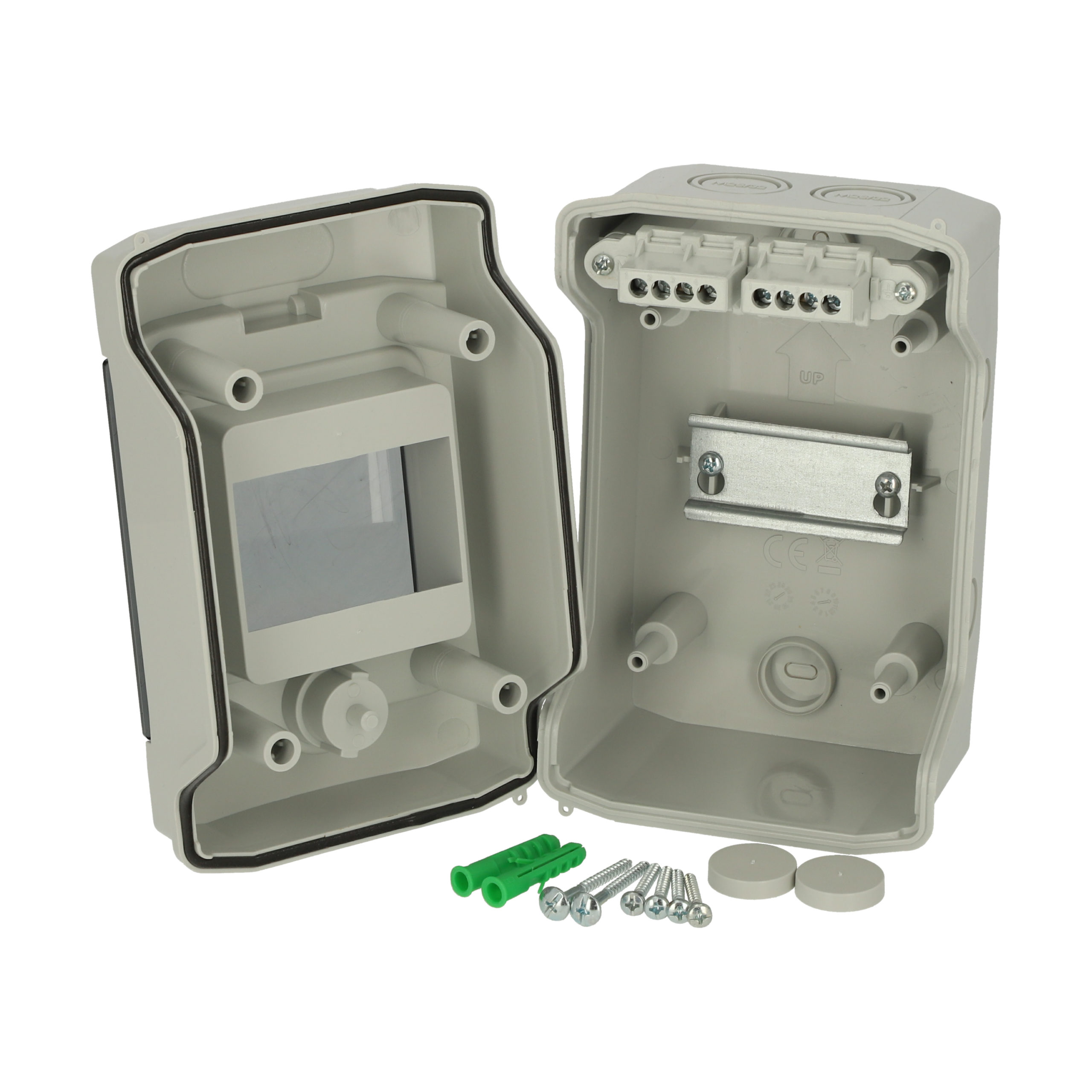 including DIN rail, insulated terminals (neutral and earth), cover for unused modules, plastic cap for screws.