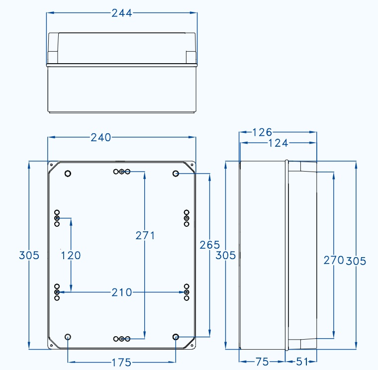 The enclosure is sealed by stainless steel fixings which are included, external wall mounting kits are available to purchase from our accessories.
