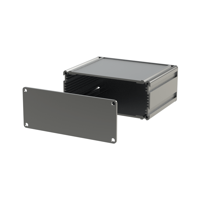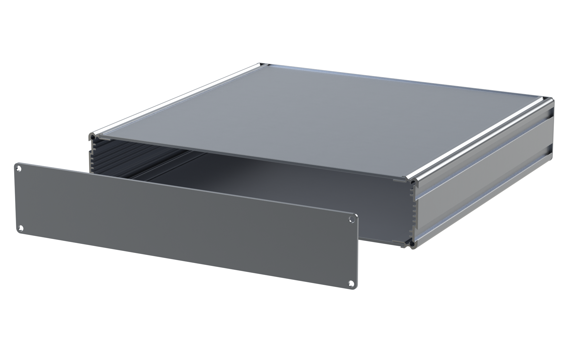 The U-Case range is a 6-piece electronics case kit in silver. Kit includes: 2x 1U/44.2mm tall side extrusions in fixed lengths, end plates, top and bottom plate and self tapping screws.