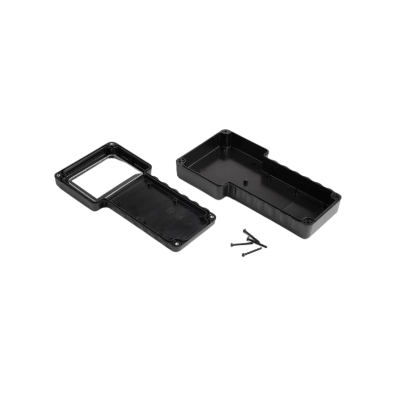 They are designed to fit perfectly in your hand whilst maximising the space at the top of the enclosure for an LCD. There are 12 variants of this enclosure to suit your application including different size window, no window and with or without battery compartment.