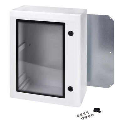 Grey (RAL 7035) polycarbonate IP66 cabinet enclosure with clear window, PUR gasket and back plate. Two point changeable locking system with key which is included in the case. ARCA cabinets are designed for harsh and demanding environments combining robust and rugged qualities with ease of use and installation. The polycarbonate material achieves IK10 impact rating and UL94-5VA flammability rating.