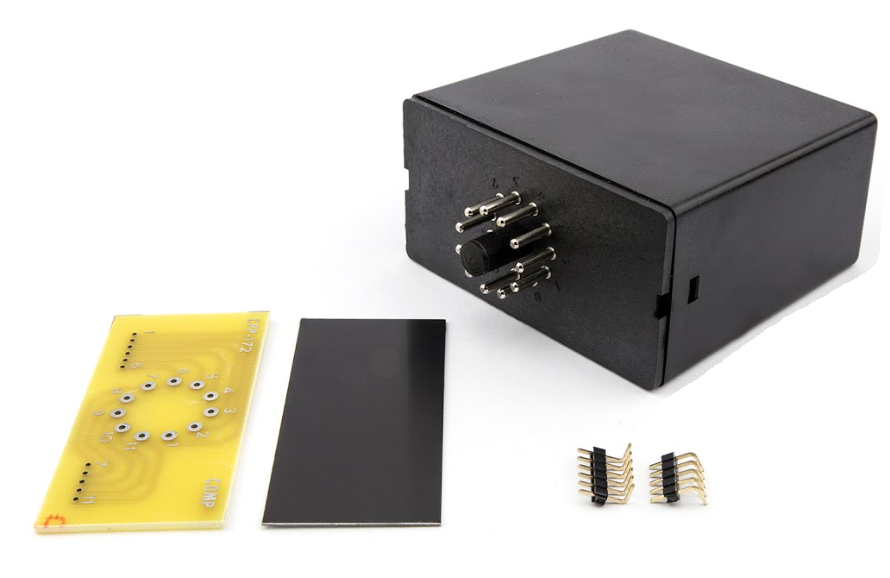 Black enclosure manufactured in Polypropylene and Noryl GFN2-SE1 (base), 11 soldered contact to circuit which is included, self-adhesitve front panel. Snap fit. LOW COST MACHINING.This product can be machined to your specifications at the point of manufacture.Contact us for details.