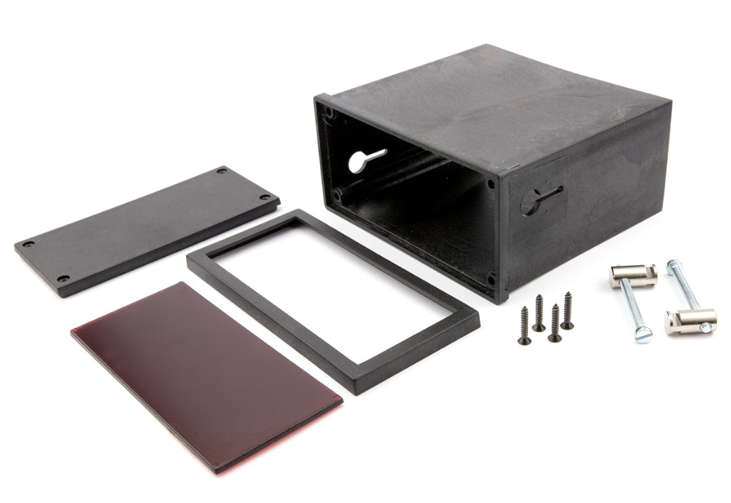 DIN panel mounted cases, material glass reinforced noryl GFN2-SE1 according to international standard DIN 43700, horizontal and vertical PCB guides, complete with all fixings, front and rear plates and bezel, two side clamps are included. Colour black. Best Buy – comes complete as seen.LOW COST MACHINING.This product can be machined to your specifications at the point of manufacture.Contact us for details.