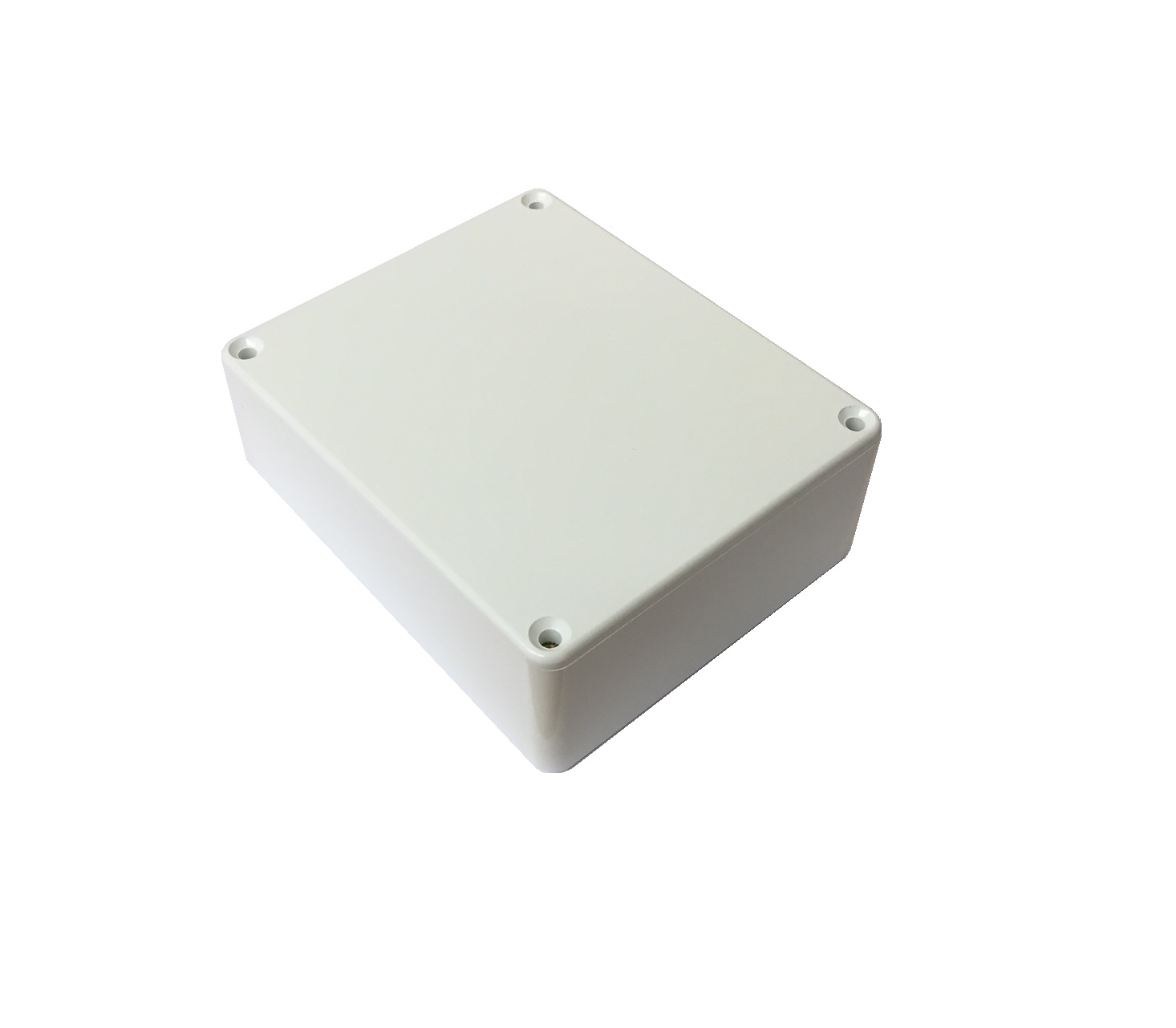 Small rectangular, material ABS, screw together, smooth finish, vertical PCB guides, colours black, white or grey