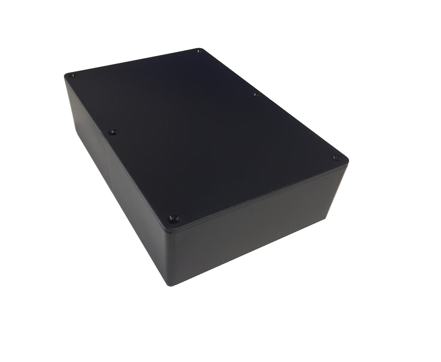 Large rectangular, material ABS, screw together , smooth finish, vertical PCB guides, colours black, white or grey