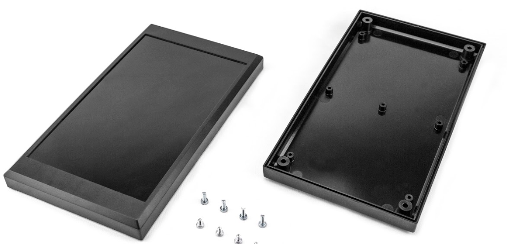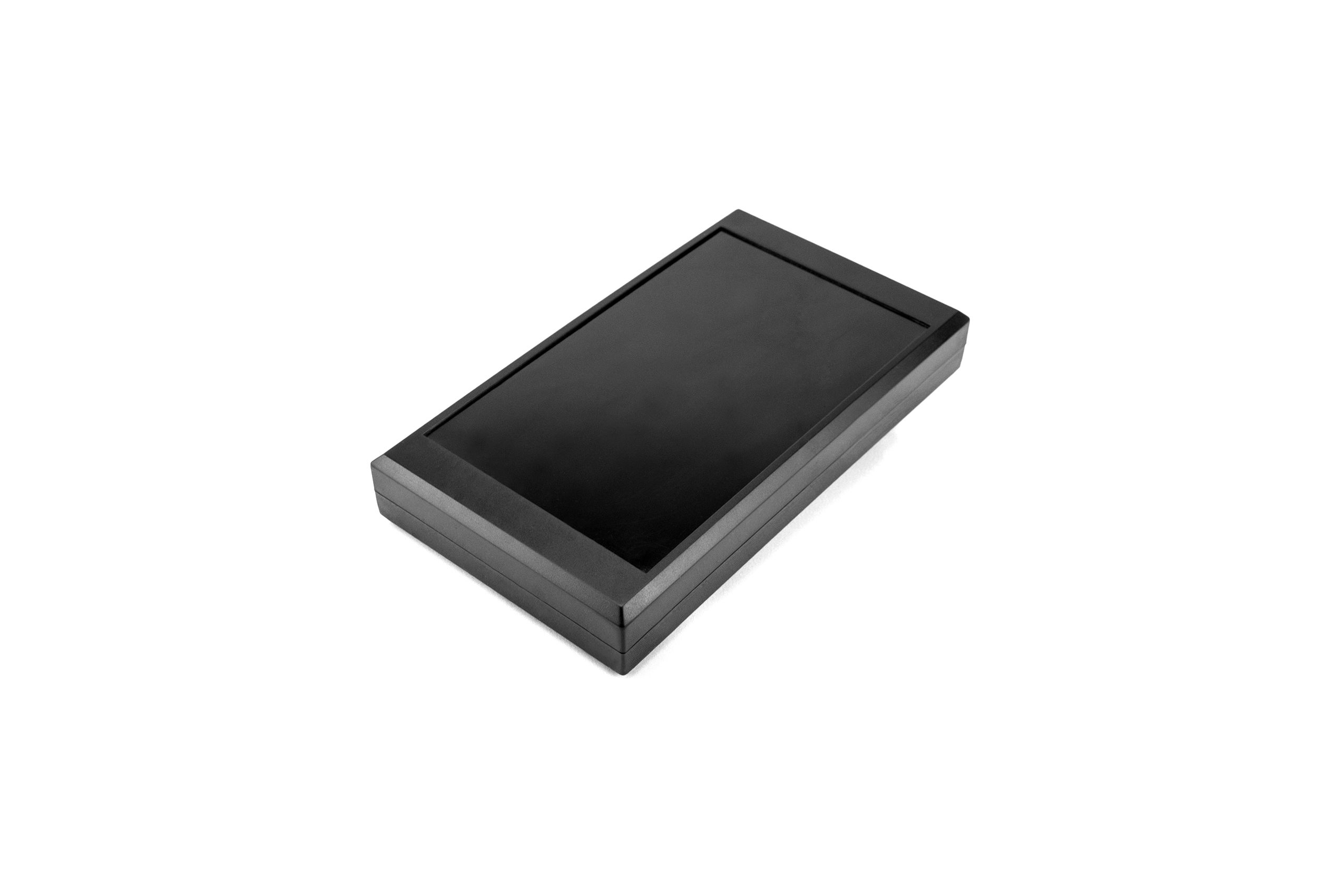 Large rectangular, black, material ABS, recessed top panel 162 x 98 mm, membrane key pad area, screw together, smooth finish.LOW COST MACHINING.This product can be machined to your specifications at the point of manufacture.Contact us for details.