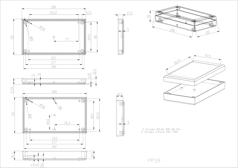 Large rectangular, black, material ABS, recessed top panel 162 x 98 mm, membrane key pad area, screw together, smooth finish.LOW COST MACHINING.This product can be machined to your specifications at the point of manufacture.Contact us for details.