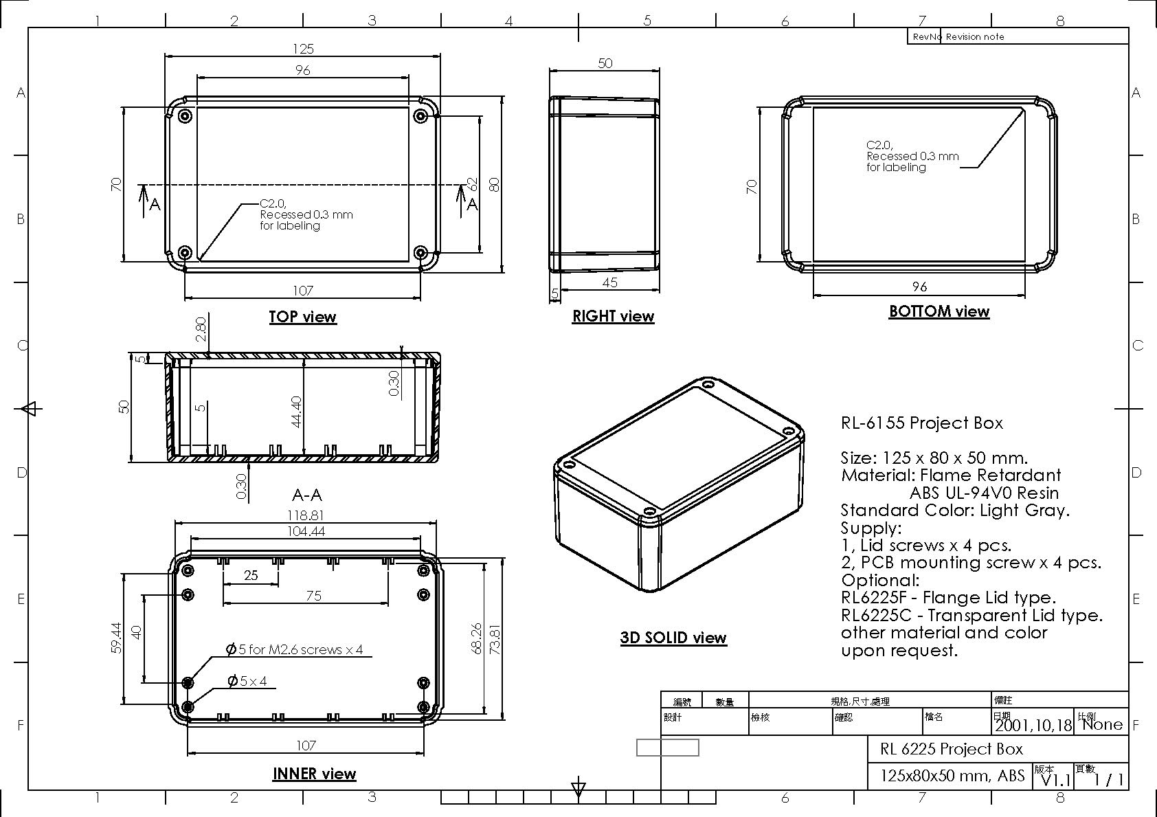 UL94V-0 material available upon request, please contact us for more information.