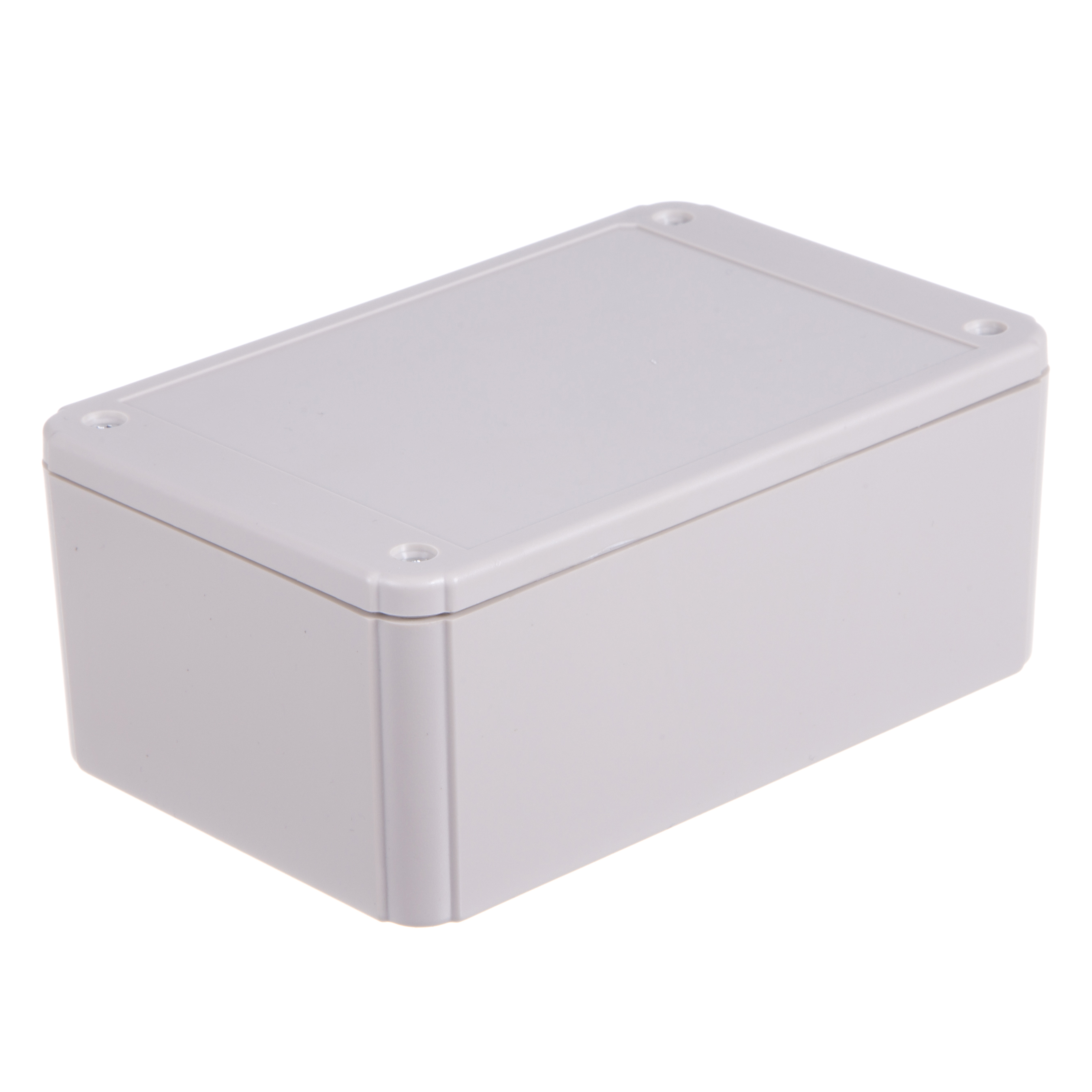 Multipurpose enclosure moulded in grey ABS HB material. Internal PCB mounts in both the top and the base. Top and bottom recessed areas. All fixings supplied. Also available with flanged lid.