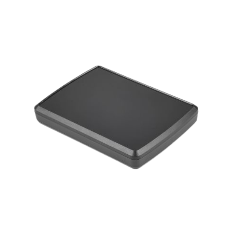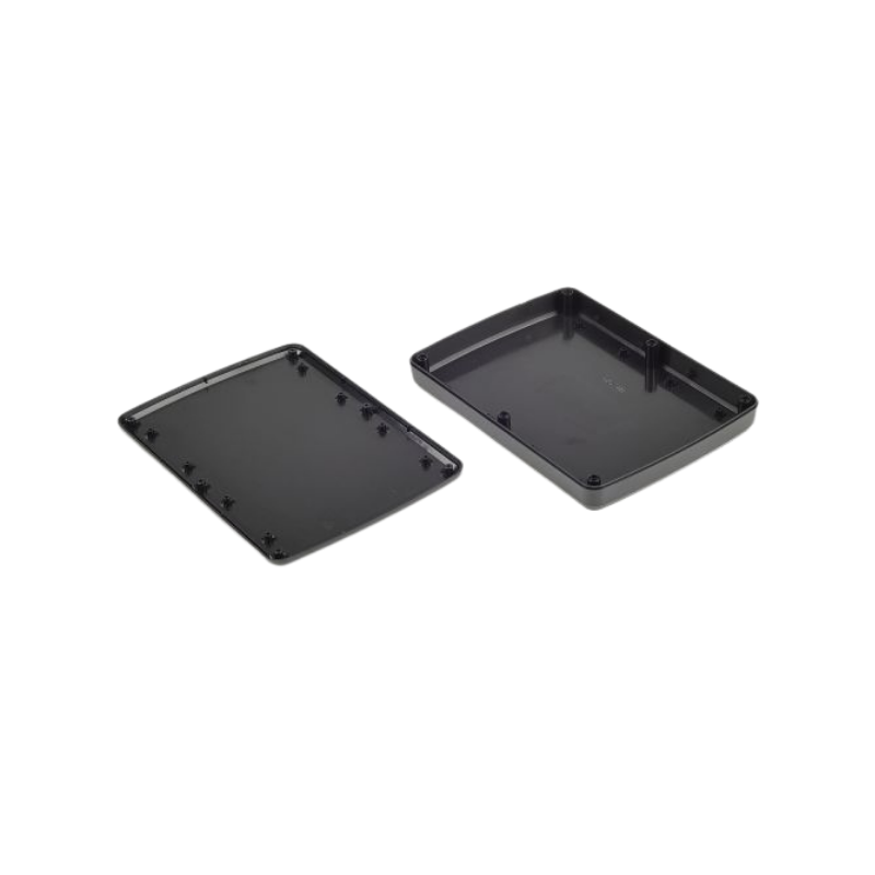 The Tablet enclosures benefit from a top face with a curved recess area to make these units standout from standard rectangular enclosures. In addition to this both the lid and base benefit from bevelled edges not only for the purpose of styling but also to give great hand feel for handheld applications.