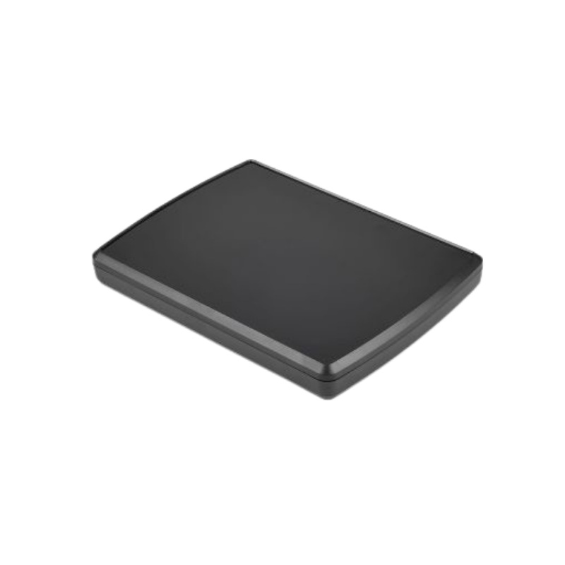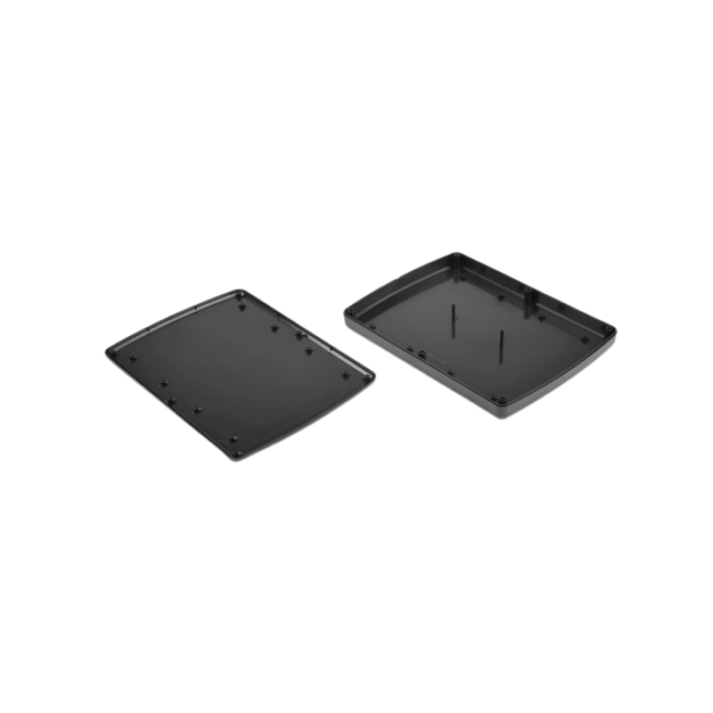 The Tablet enclosures benefit from a top face with a curved recess area to make these units standout from standard rectangular enclosures. In addition to this both the lid and base benefit from bevelled edges not only for the purpose of styling but also to give great hand feel for handheld applications.